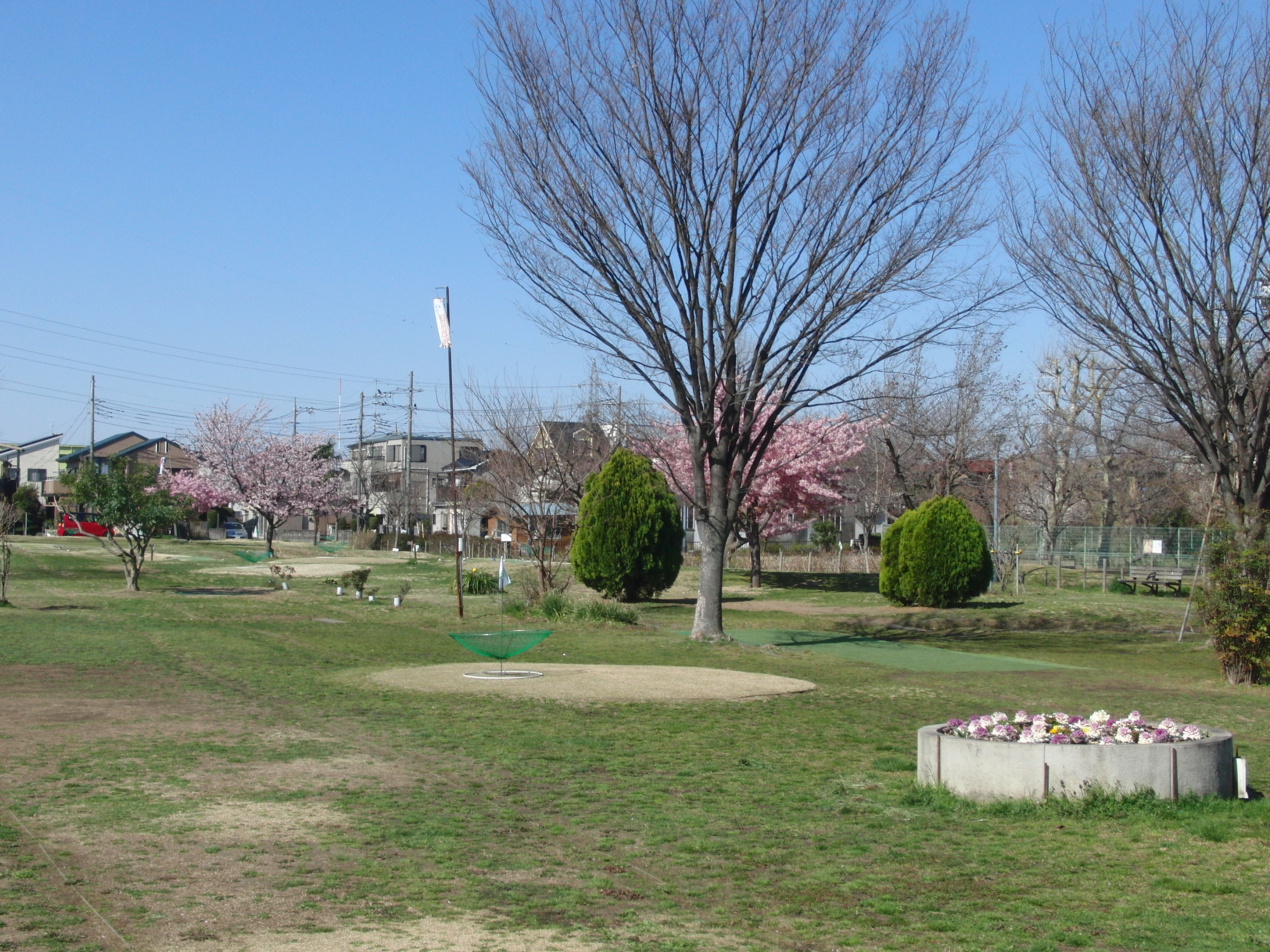 | 施設内整備 | 神根運動場周辺が、国際公認基準の水泳場の建設計画が着々と進んでいます。TBG場は、令和7年3月26日に、有志のご協力を得てコースの一部を改装しました。この仮設コースは18ホールパー72として28日より使用可能となります。なお、コースレイアウトの制約上、東側の数ホールは隣のホールと接近したレイアウトとなっていますので、ショットはもちろん素振り、待機の際は周りの方に注意し、けがをされないように十分ご注意ください。この仮設コースは令和8年8月まで継続使用していくことになります。現在の予定では、令和8年9月より令和9年6月までの10か月間完全閉鎖となり、新たなTBG場として令和9年7月にオープンとなる予定です。なお、令和7年3月28日からは、アウトコース3番ホールの南側に当たる川口北中学校の東側(プール脇)の広場が駐車場となります。当該駐車場は狭いことから、皆さんのご協力のもと、効率よくご利用いただくことが欠かせません。事故のないようにご使用下さい。 |